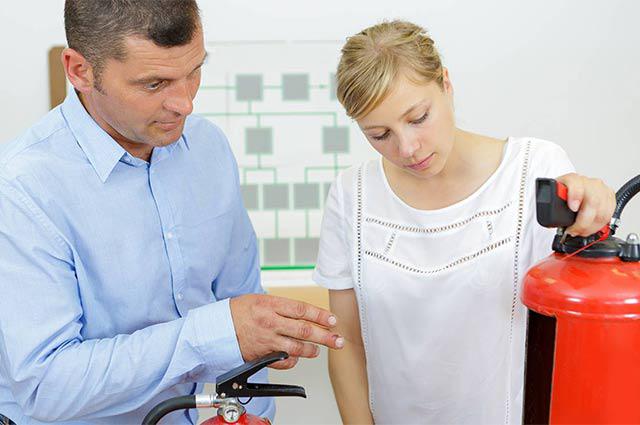 - utiliser les moyens de premier secours afin de pouvoir faire face à un début d’incendie, notamment manipulation des extincteurs ;